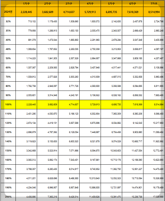 3. 2024년 중위소득 기준액 한눈에 확인하기